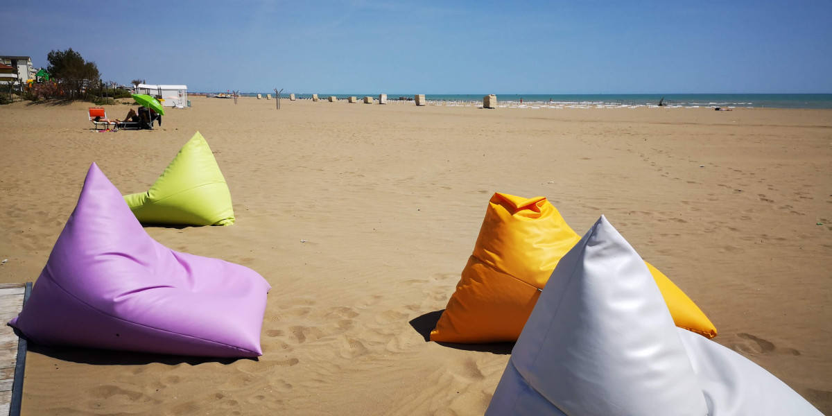 Abbiamo arredato la spiaggia con i nostri pouf Iris e Sleep presso la vela dell'Orso